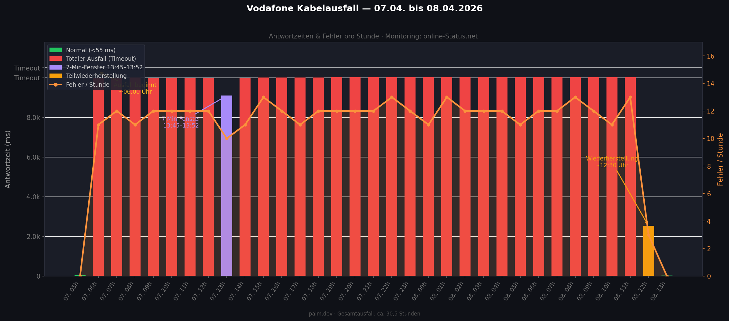 Gesamtausfall: ~30,5 Stunden.